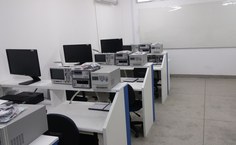 Este laboratório conta com 9 bancadas de instrumentação com equipamentos modernos para o ensino de graduação nas áreas de circuitos elétricos e eletrônicos. Cada bancada conta com: